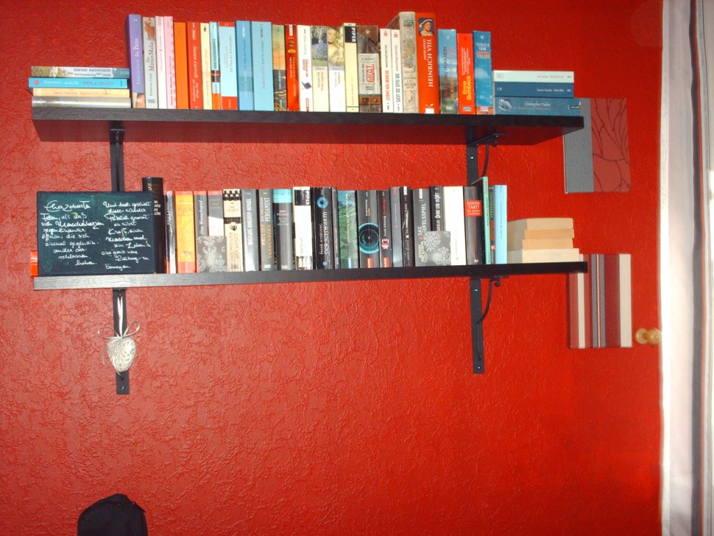 Dein Regal ist wirklich schön, leider hab ich zuviele Bücher für sowas.Geht mir genauso. Ich finde das Regal sieht total schön und auch Ordendlich aus.... aber es würden da wahrscheinlich nichtmal die Hälfte unserer Bücher darin Platz finden^^