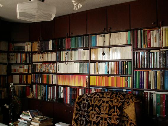 Das war mir eigentlich ganz recht, da ich meine Bücher gerne beieinander habe, nur ist es ein bisschen umständlich, immer aufzuspringen und ins andere Zimmer zu rennen, wenn ich mal was nachschlagen muss (was ständig passiert). Augenblicklich stehen deshalb einige Bücherstapel rund um meinen Sessel (was auch nicht wirklich ordentlich aussieht), und für die könnte man ja eine klitzekleine Ausnahme machen... -