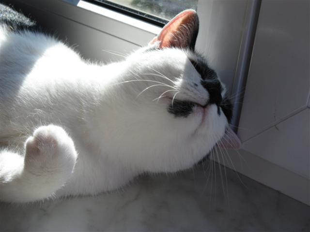 Die schwarze Katze heißt Minka auch Minimaus genannt. Die S/W Fellnase heißt Teddy, Schnuckchen genannt.