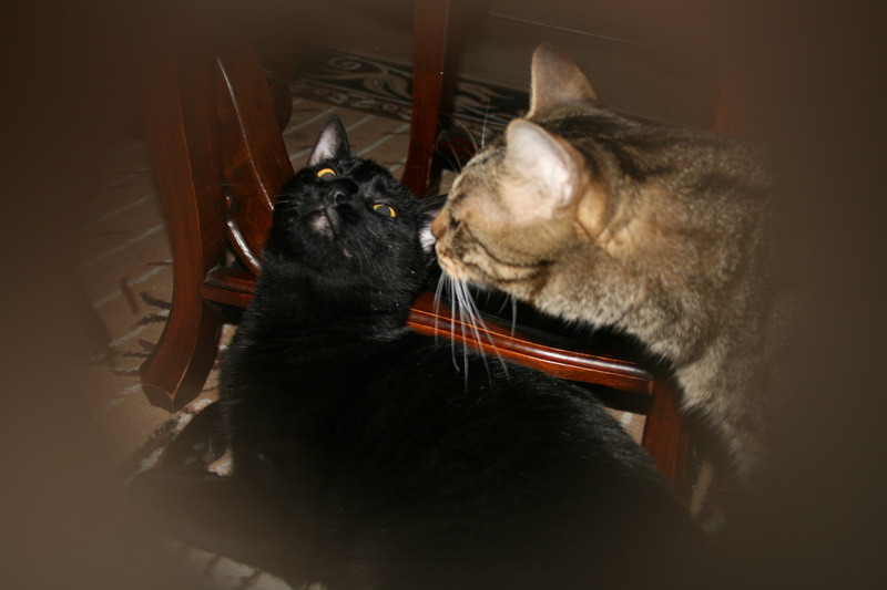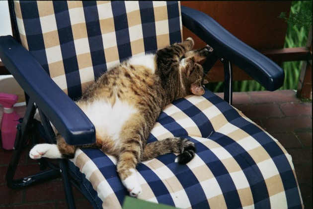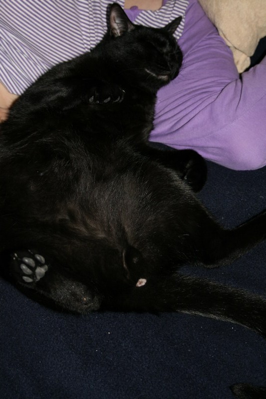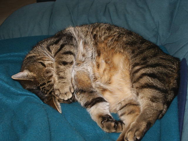 Jetzt bin ich mit meinem Freund zusammengezogen und Feli konnte nicht mit. Sie lebt seit 14 Jahren in meinem Elternhaus, mit großem Garten und in 'ner Sackgasse (so gut wie kein Verkehr). Einen ruhigen Lebensabend könnte ich ihr in unserer Wohnung (nur Balkon & viel Fahrzeugverkehr) nicht bieten. Ich seh sie zwar oft, aber es fehlt trotzdem, dass sie mit im Bett schläft, morgens putzmunter ist, ununterbrochen schwätzt (leider verstehe ich halt nix) und abends zum Fernsehen/Lesen ... aufs Sofa kommt