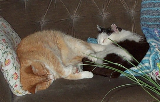 Das sind meine beiden. Pepsi ist begeisterte Rückenschläferin, Maja hält sich beim Schlafen immer die Augen zu