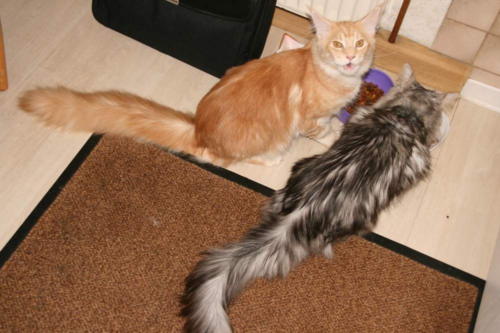 Cooniebert und Yannick: Futtern ist ihr Hobby. Besonders das des Roten.