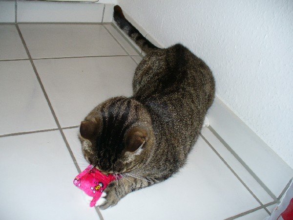 Die Minzkissen leben bei Lara meist nicht lange, ein zwei Tage und die Dinger liegen zerfetzt in der ganzen Wohnung verteilt. DAS STINKT!