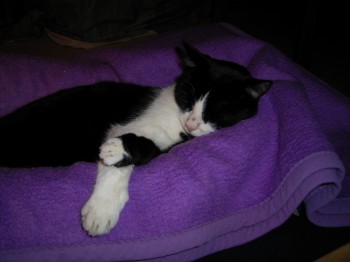 Mein Kater liegt auf dem Sofa und schläft, hat sich einen dicke Lungenentzündung eingefangen...