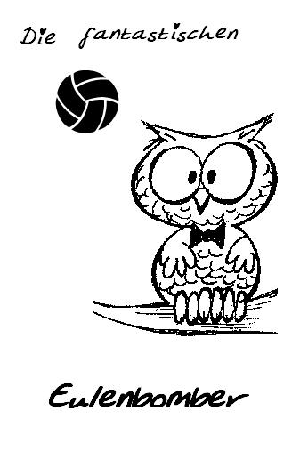 • Ohhhh, eine Eulenvolleyballmannschaft. Da bin ich auch dabei. Aber angreifen kann ich leider nicht so gut, ich steh meistens hinten zum Bälleretten oder ganz vorne zum stellen. Ich kann nämlich leider nicht schmettern...