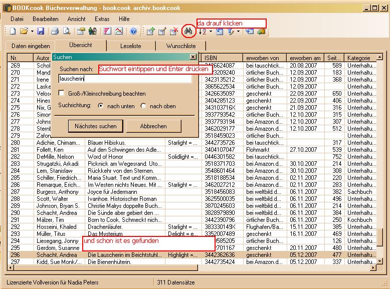 also bei mir klappt es auch wunderbar - ich hab mal ein Bild angehängt, kannst ja mal vergleichen, ob es bei Dir auch so aussieht, oder ob Du vielleicht etwas anders machst. bei mir klappt es mit Titel oder Autor, in Groß- und Kleinschreibung.