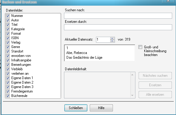 Wenn ich das Programmm öffne und dann auf "neuen Datensatz öffnen" klicke, dann wird ein neuer Datensatz geöffnet - der hat aber dann z.B. die Nr. 131, obwohl es das 199. Buch wäre ![]()