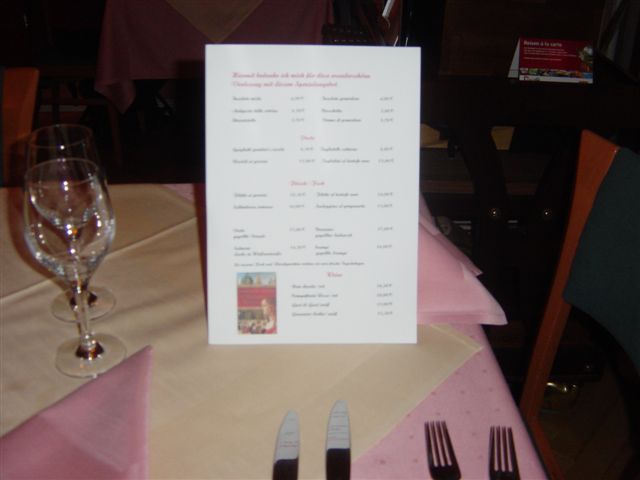 Das Restaurant hat sich besondere Mühe gegeben. Am Eingang hing ein Plakat, was auf die Lesung hinwies und es gab sogar eine extra Speisekarte, mit Bild vom Buch, in dem sich das Team mit besonderen Angeboten für die Lesung bedankte.