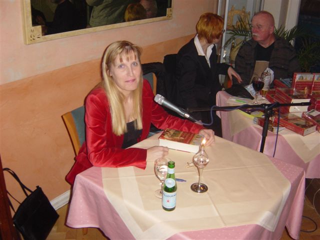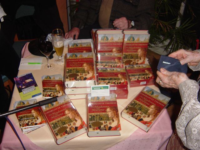 Nach Abschluß war der Erwerb von Büchern möglich und Charlotte Thomas hat auch fleißig signiert. Das Angebot wurde gut angenommen, soweit ich das sehen konnte.