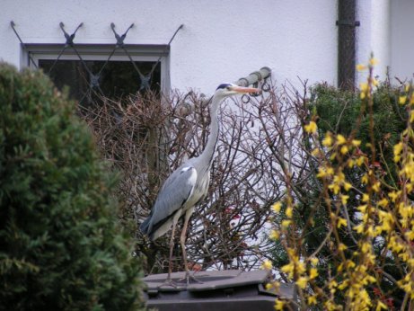 Vorhin habe ich meinen Augen nicht getraut - da saß doch in unserem Garten eine waschechte Eule. Ich habe noch nie zuvor eine gesehen, glaube ich. Also schnell die Digicam geholt und ein Foto geschossen. Die Eule ließ mich ganz nah heran, ich durfte sie mir ganz genau ansehen, aber aus dieser Nähe war kein Foto mehr drin, schätze, sie hat es mit der Angst zu tun bekommen, weil sie nämlich dann weggeflogen ist.