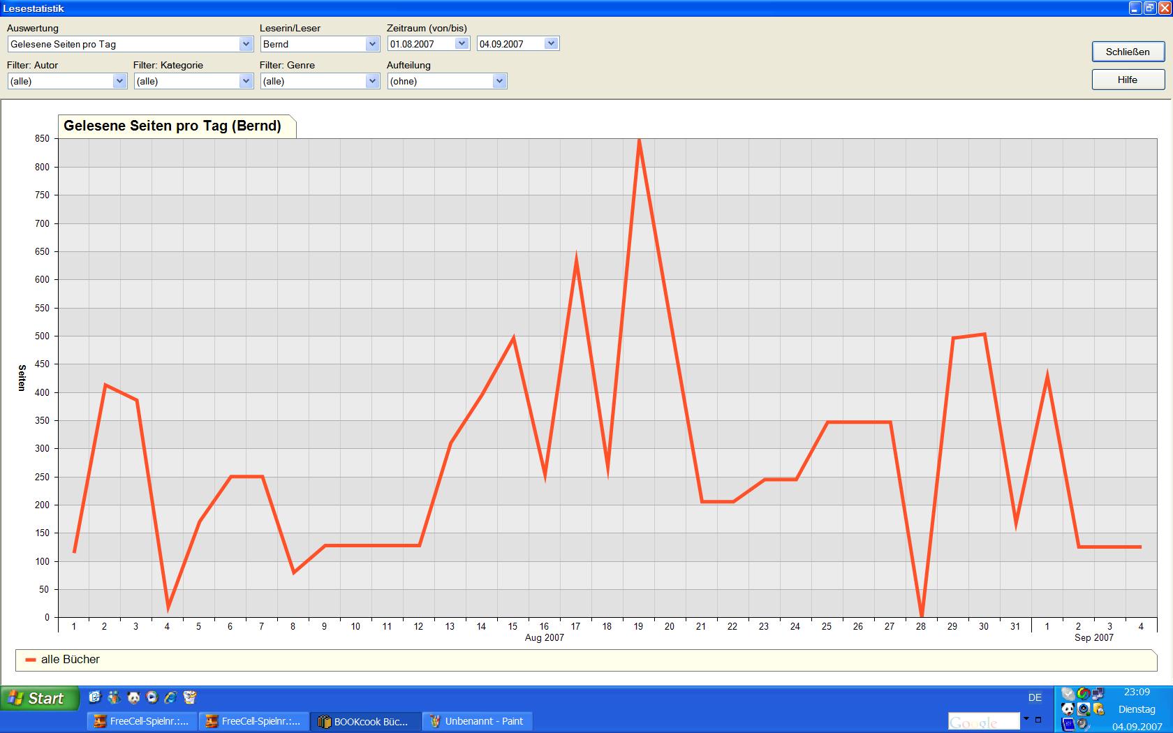 • Strohwitwer am Wochende- ca 9. Stunden reine Lesezeit am Tag entsprechen eta 7- 800 Seiten- Zugfahrten zu Terminen am anderen Ende Deutschlands (8 Stunden Zug, also zwei Taschenbücher), da kommt was beisammen.