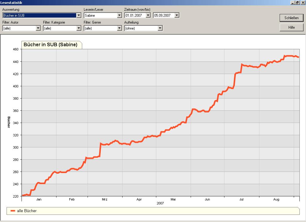 ausgeliehene Bücher zähle ich nur bei der Leseliste mit, also hab ich hier teilweise längere "nicht-abbau-zeiten" in denen ich die ausgeliehenen lese.
