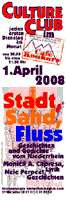 Am Dienstag, 1. April 2008, 20.30 bis etwa 21.30 Uhr, lesen unter dem Titel "Stadt, Sand, Fluss", Geschichten und Gedichte vom Niederrhein Nele Perpéet (Geschichten) und Monica Ana Capresa (Lyrik).