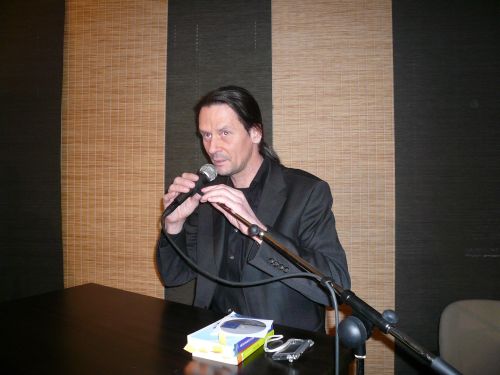 Ein wenig von der Zeitumstellung mitgenommen und mit leichten Kopfschmerzen (die sich heute noch gesteigert haben :fetch) machte ich mich gestern auf den Weg zu Toms Lesung in Hannover - leicht beunruhigt verfolgte ich, wie sich am Bahnhof die Ankunftszeit des Zuges immer weiter verschob - erinnerte ich mich doch zu sehr daran, dass ich aufgrund der Unregelmäßigkeiten der Deutschen Bahn schon einmalfast zu spät zu einer Cornelia-Funke-Lesung gekommen wäre... Aber es ging glücklicherweise alles gut ![]()