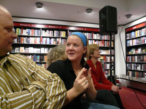 Als ich am Mittwoch Abend mit fliegenden Fahnen in die Innenstadt geeilt bin, um mich mit Wolke und Corinna und Jörg Kastner vor der Lesung zu treffen, hatte ich nicht damit gerechnet, dass die Innenstadt so voll sein würde ![]()
