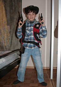 Zum Teufelchen und der Piratin passt noch der Cowboy, obwohl die Minieule nicht mehr ganz so mini ist: