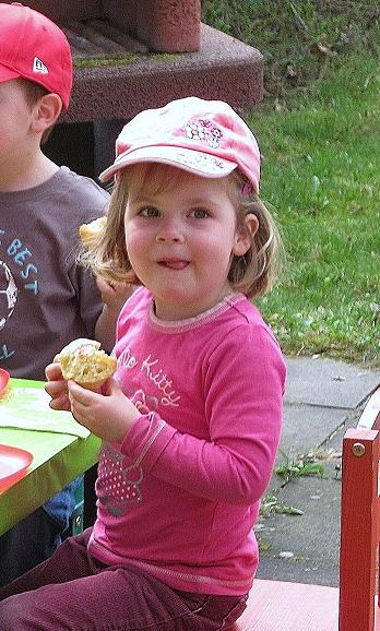 So sieht übrigens eine Lilli aus, die (heute) Fahrradfahrverbot hat (sie fährt seit 1 Woche ohne Stützräder, bzw. hatte nie welche - Laufrad sei Dank), da sie sich im Kiga beim stolpern überschlug und fies mit dem Kopf aufschlug. So musste ich den lieben Erzieherinnen heute versprechen sie unter Beobachtung zu halten.