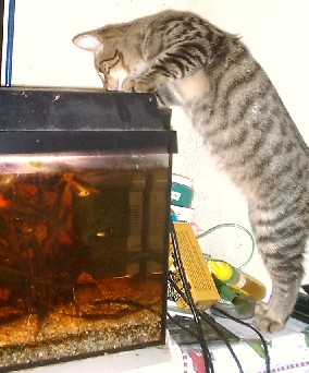 Unser Charlie hat inzwischen das Aquarium entdeckt..