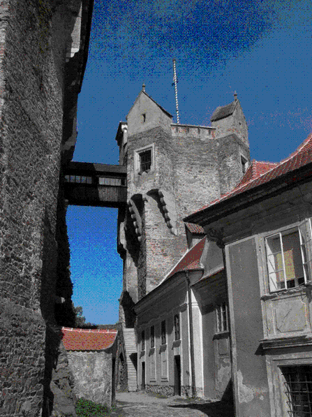 Einmal der Marktplatz und das Rathaus von Brünn und dann noch zweimal Pernstein!