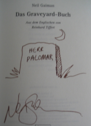 Mein neues Avatar hat mir der englische Schriftsteller Neil Gaiman beim signieren in mein Buch "Das Graveyard-Buch" gezeichnet.