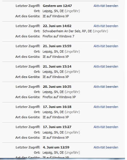 Für mich sieht das aus, als hätte ich mich an diesen Orten schon mal bei FB eingeloggt... Aber ich war noch nicht mal in einer dieser Städte ![]()