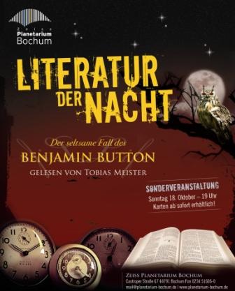Mit dem Fallen des Herbstlaubs präsentiert die erfolgreiche Lesereihe einen ganz besonderen Klassiker: F. Scott Fitzgeralds „Der seltsame Fall des Benjamin Button“ live unter funkelnden Sternen! Lesen wird diese außergewöhnliche Kurzgeschichte Tobias Meister, die deutsche Synchronstimme von Brad Pitt.