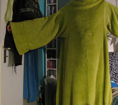 1. Material: Langhaariger Coral-Fleece, ähnlich manchen Bademänteln (kein Frottee) - super weich, hat allerdings zu Beginn geflust - aber einmal draußen ausschlagen und dann war nichts mehr mit flusen.