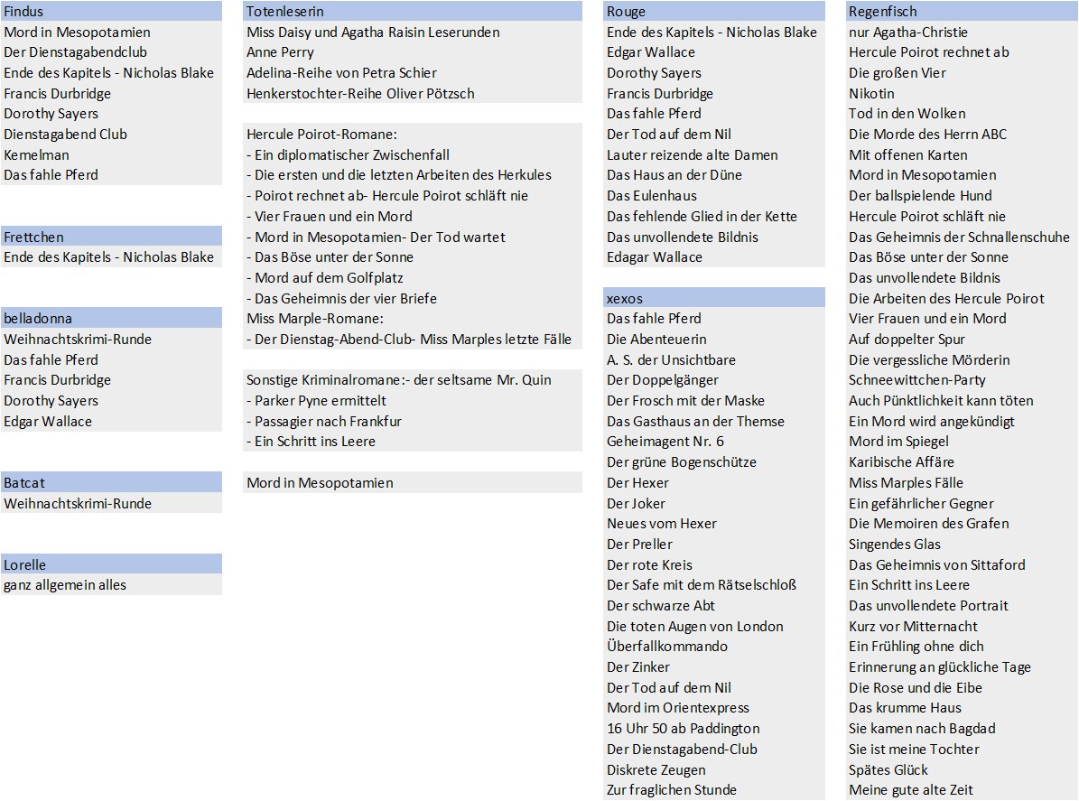 die von Dir genannten hatten wir aber teils schon in den Leserunden, oder?