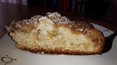 Von außen ist mir der Kuchen etwas zu dunkel geworden, aber von innen war er trotzdem sehr saftig. Das nächste Mal würde ich allerdings etwas mehr Rhabarber verwenden...