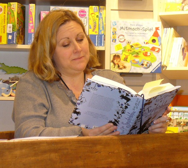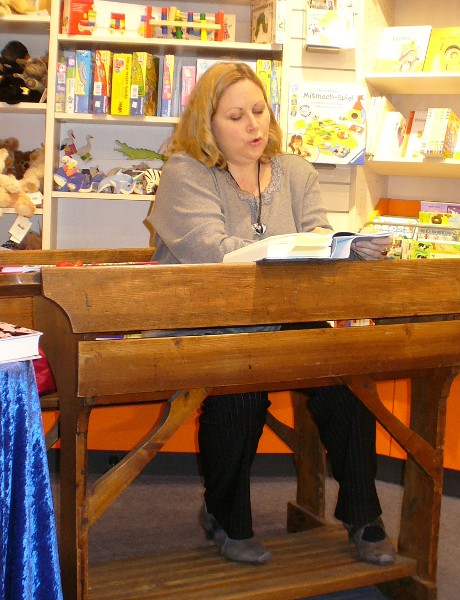 Kerstin Gier las am 09.03.10 in einer Buchhandlung in Düsseldorf-Oberkassel aus „Saphirblau“, dem 2. Teil ihrer „Liebe geht durch alle Zeiten“-Reihe