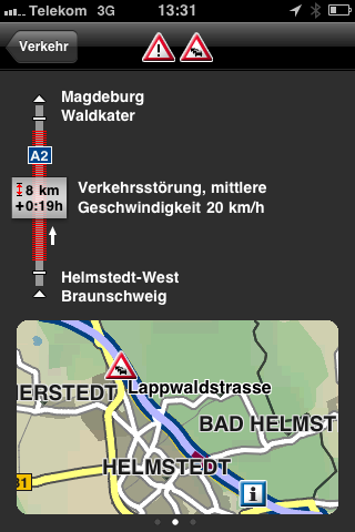 Was mich dennoch interessieren würde ist, woher das iPhone die Staus und Sperrungen aus dem Netz zieht und warum genau diese Angaben genauer sein sollen. (Wahrscheinlich sind sie bei der Löschung der Staumeldungen schneller als beim Rundfunk.)