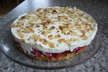 *Suzann bedankt sich ganz herzlich für die Glückwünsche und verteilt Stücke von Idigies Rhabarberkuchen und Schnuckerles Amarettini-Mascarpone-Erdbeertorte*