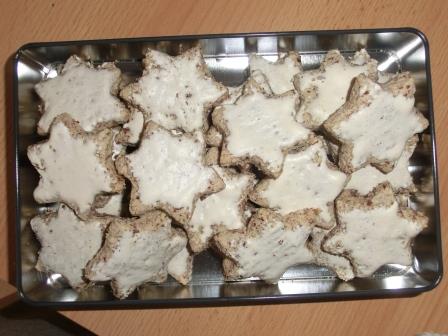 Wir haben Schoko-Orangen-Sterne, Mandelsplitter, Ausstecherle, Schokobrot, Überrachungsiglus, Zimt-Nuss-Makronen, Lucia-Plätzchen (mit Karamell), Kakaokugel und Schoko-Orangen-Kipferl gemacht ![]()