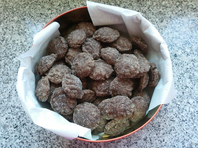 Wir haben die Weihnachtsbäckerei heute mit Bärentatzen eröffnet, die stehen jetzt im Keller zum Trocknen und kommen morgen als erstes in den Ofen.