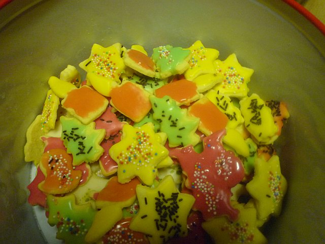 Freitag wird Großkampftag, da steht ein Haufen Butter- und Honigplätzchen an. Nächste Woche wird die erste Ladung verschenkt und dann muss ich wieder ran für die zweite Verschenkladung. Ein letztes mal wird dann noch gebacken bevor es zu Weihnachten und Silvester zu meinem Schatz geht, denn wir wollen ja auch ein paar Leckerchen mümmeln :grin.