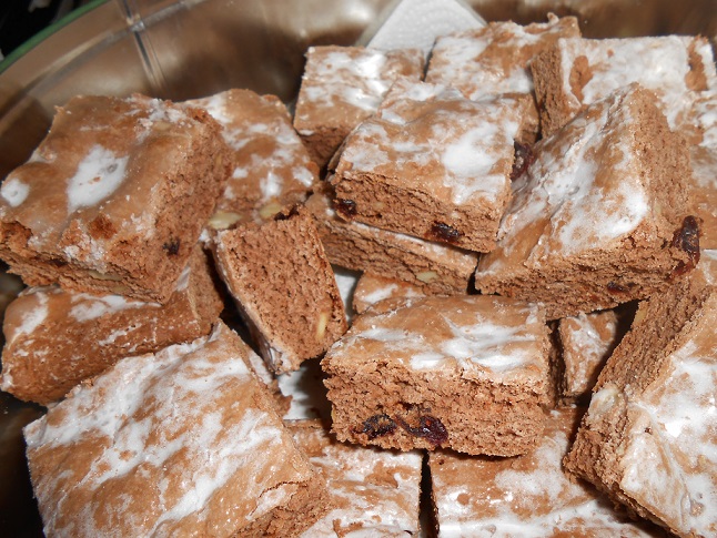 die Lebkuchen sind jetzt im Backofen, der Teig den ich probiert habe war schon mal sehr lecker, da wir kein Orangeat/Zitronat mögen habe ich das jetzt einfach weggelassen und ein wenig mehr Nüsse rein gemacht
