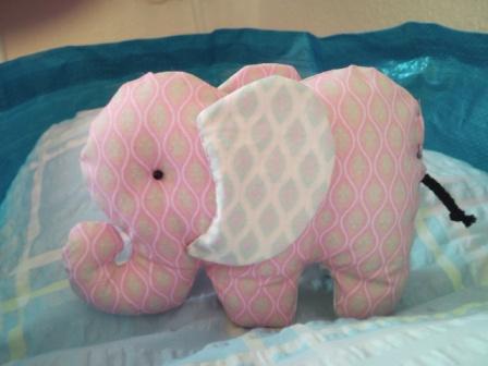 6 kleine Taschen für Taschentücher und 2 Elefanten, dem zweiten fehlt noch die Füllung, daher erstmal nur den einen als Foto.