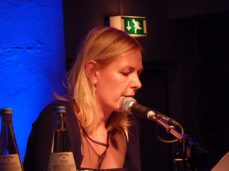 Die Lesung wurde moderiert von der Lektorin Claudia Senghaas des Gmeiner-Verlages. Sie stellte den Verlag kurz vor und leitete dann zur ersten Lesung des Abends über, die Wienerin Claudia Rossbacher präsentierte ihren Roman "Steirerblut". Sie erzählte über den Ort der Handlung, führte die Figuren ein und las immer wieder kurze, aber spannende Abschnitte vor.