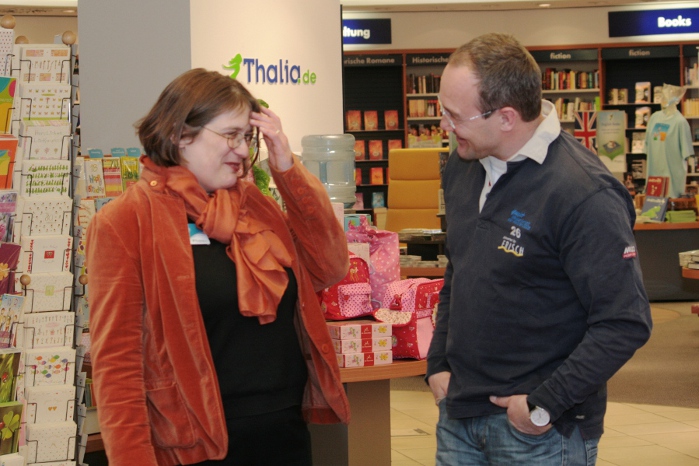 war bereits im Vorfeld zu merken, denn das Publikum war nicht nur mit Bücherstapeln unter dem Arm und Signierwünschen zur Buchhandlung gekommen, sondern fachsimpelte bereits vor der Lesung über den neuen Thriller.
