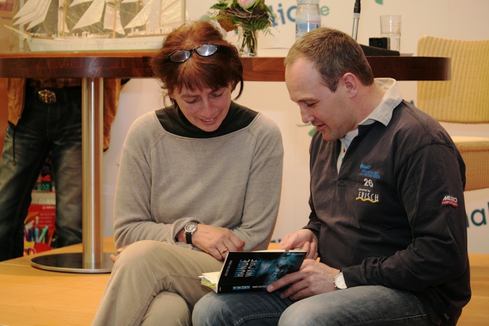 Nach der Einführung folgte die Lesung aus verschiedenen Kapiteln, die für die bislang uninformierten Leser eine gelungene Einführung in die Protagonisten, in die Szenerie und ein wenig Kieler-Woche-Feeling gab, ohne allzu zuviel vom Kriminalverlauf und der Auflösung zu verraten.