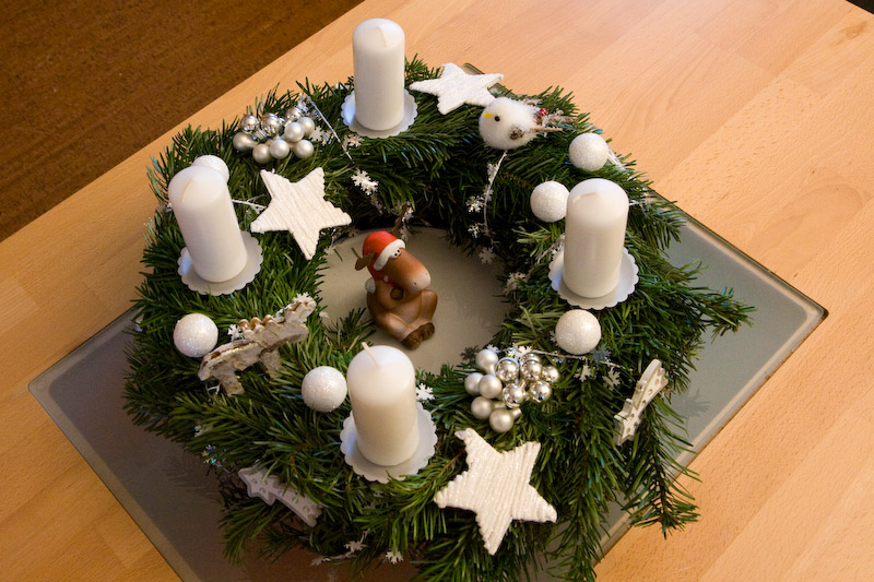 anbei ein paar Fotos vom selbst gebastelten Adventskranz