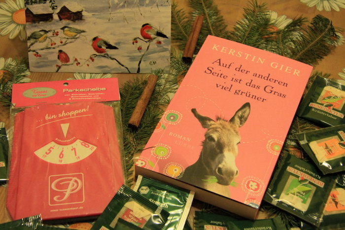 Über das Buch freue ich mich sehr und auch der Honigkuchen schmeckt (hab jetzt extra gewartet, bis ich die zusammen mit meinem Tee verzehren kann :grin)