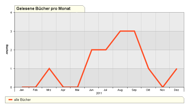 Aus deiner Grafik kann man ja alle buchrelevanten Ereignisse ablesen. Man erkennt deutlich den SuB-Abbau im Frühjahr, die vierwöchig stattfindenden Flohmärkte und das Eulentreffen. Der fehlende Peak im März bedeutet wohl, dass du beim Frühjahrstreffen nicht dabei warst.