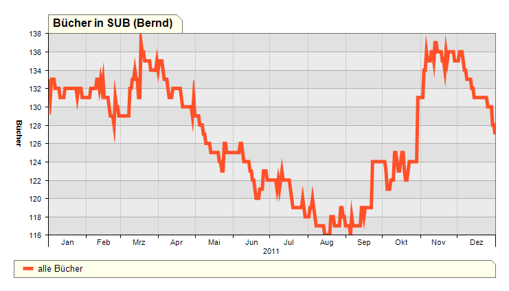 So steht nun bei Nov. und Dez 0 Bücher - 0 Seiten.Die durchschnittliche Verweildauer im SuB ist von 400 auf 580 Tage gestiegen
