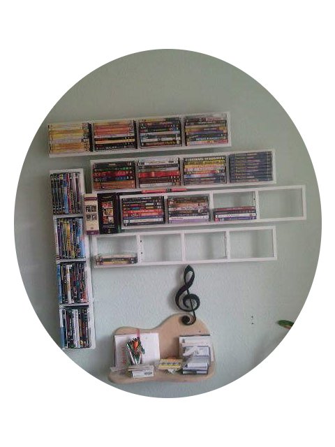 So zwei neue Regale für die DVD - Sammlung sind angebracht. Bisschen schief fotografiert..:zwinker.