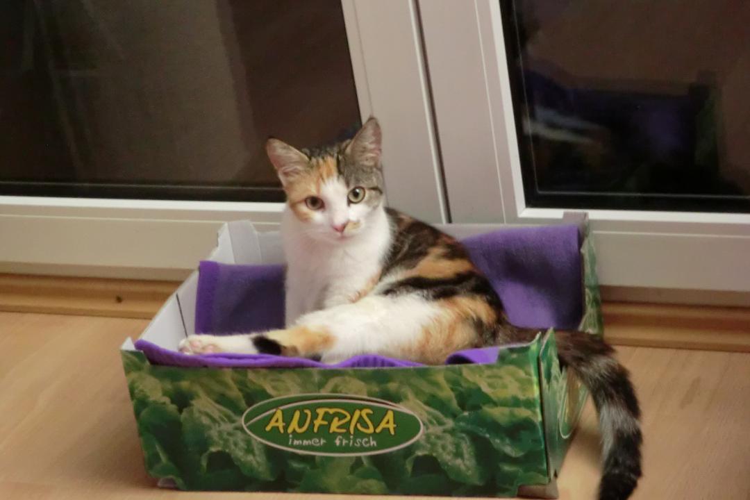 Melkat : oh, die ist ja süß! Und süß auch, dass sie im Karton liegt. Machen meine auch immer sehr gerne. Da kauft man zig Katzenbetten,-sofas, -hängematten. Nichts wird benutzt, aber kaum kauft man mal Schuhe und der Karton steht für 1 Minute auf dem Boden, liegt ne Katze drin - die eigentlich viel zu groß ist dafür. Besucher sind immer irritiert, warum in meinem Wohnzimmer alte Kartons auf dem Boden rumliegen