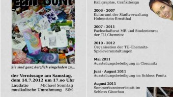 Am 14.07. 2012 um 17:00 Uhr findet in der Galerie "Kunst in der Ruine" die nächste Vernissage statt.