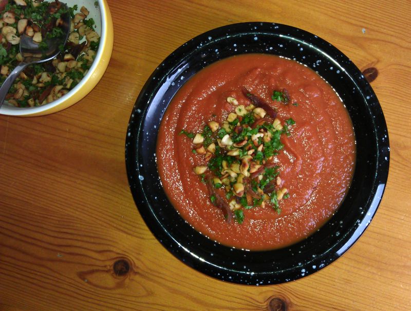 Ich hab neulich auch die Möhrensuppe mit Aprikosen gemacht, aber statt Pinienkernen Sonnenblumenkerne genommen, weil ich davon noch so viele da hatte. Und ich mag keine Petersilie, daher wurde die einfach weggelassen..
