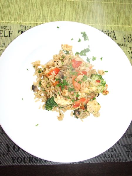 dieses Gericht habe ich leicht abgewandelt weil ich einfach einige Gemüse noch hatte, die weg sollten. Statt Stangensellerie und Weisskohl hatten wir also Champignons und Brokkoli.