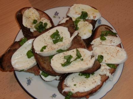 Edit: Habe nochmals etwas variiert und die Brote mit Mozzarella belegt und Basilikum drüber gestreut. War auch sehr lecker